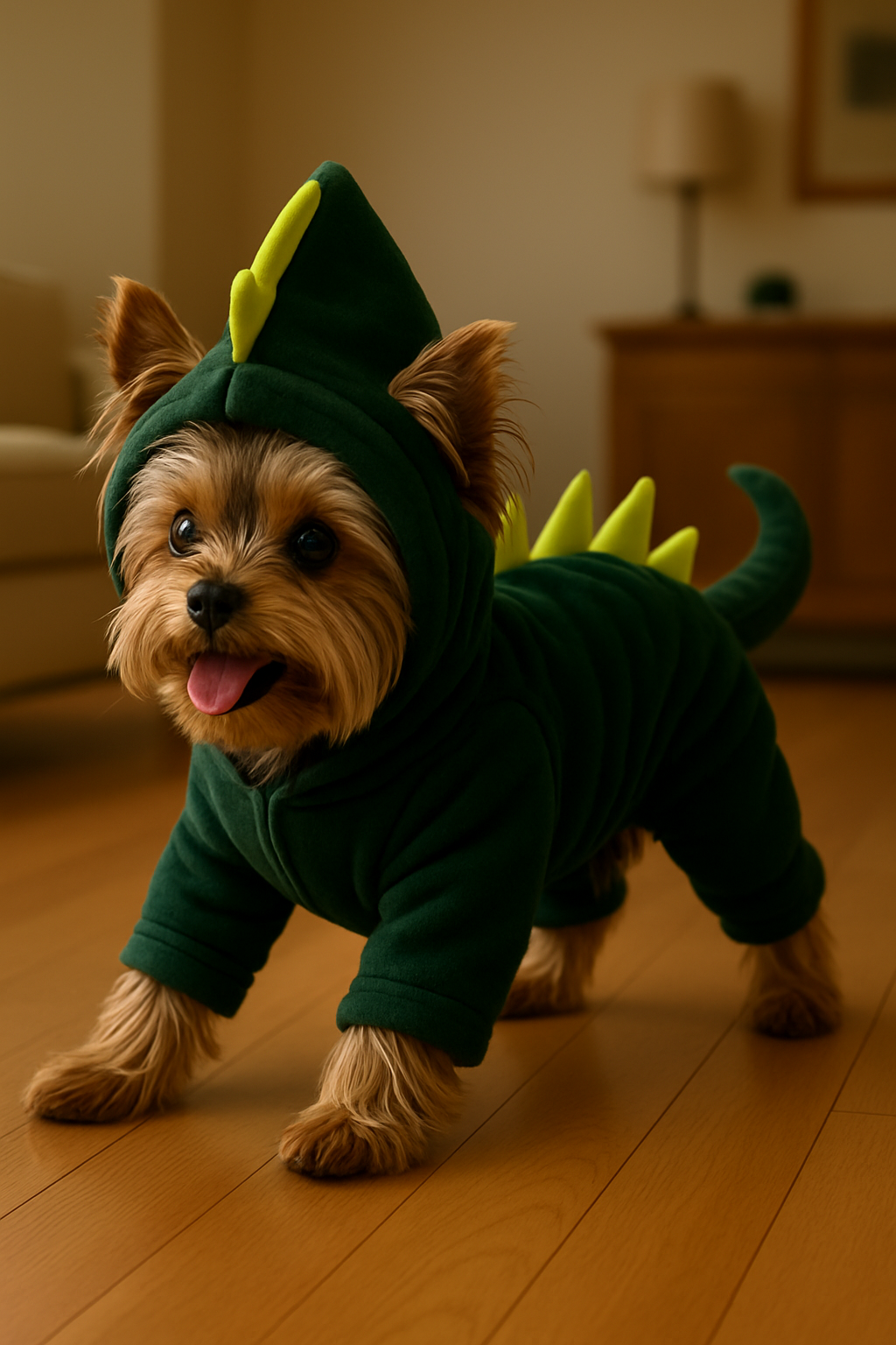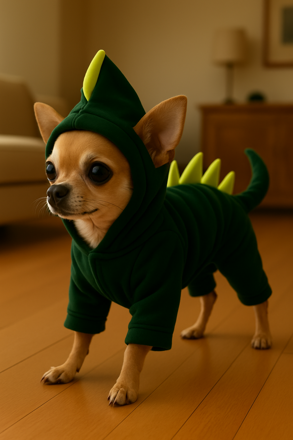 This dinosaur outfit is absolutely adorable! My pup looks so cute and gets tons of compliments during walks. The fit is perfect, and it's surprisingly comfortable for him!
